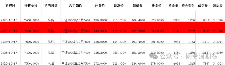 (4)中证1000期权:10月最大持仓范围7400-7500,今收7438.19,下跌0.51%,期权9月合约今天到期,主力合约正式进入10月。10月的认购和认沽全是增仓。认购增仓集中在7400-8400,合计9900张;认沽减仓增仓集中在7000-7500,合计4400W张。变化超过1000张的仓位如下图,红色是增仓较大的: