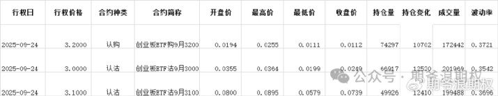 (3)创业板ETF期权:9月最大持仓范围3000-3100,今收3.062,下跌0.16%,期权9月主力合约,支撑位上移一档到3000。认购和认沽都是低行权价减仓高行权价增仓。认购减仓较少,增仓集中在3100-3200,合计1.6W张;认沽减仓集中在2500-2750,合计1.1W张,增仓集中在2900-3100,合计3.0W张。今天变化超过1W张的仓位如下图,红色是增仓较大的: