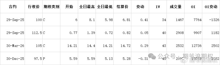 (2)美团:9月最大持仓范围115-120,窝轮牛熊街货分布90-115,今收106.30,上涨0.76%。期权盘路变化超过1000张的仓位如下图,今天微涨,美团还是有反弹的概率,但幅度可能不会太大。
